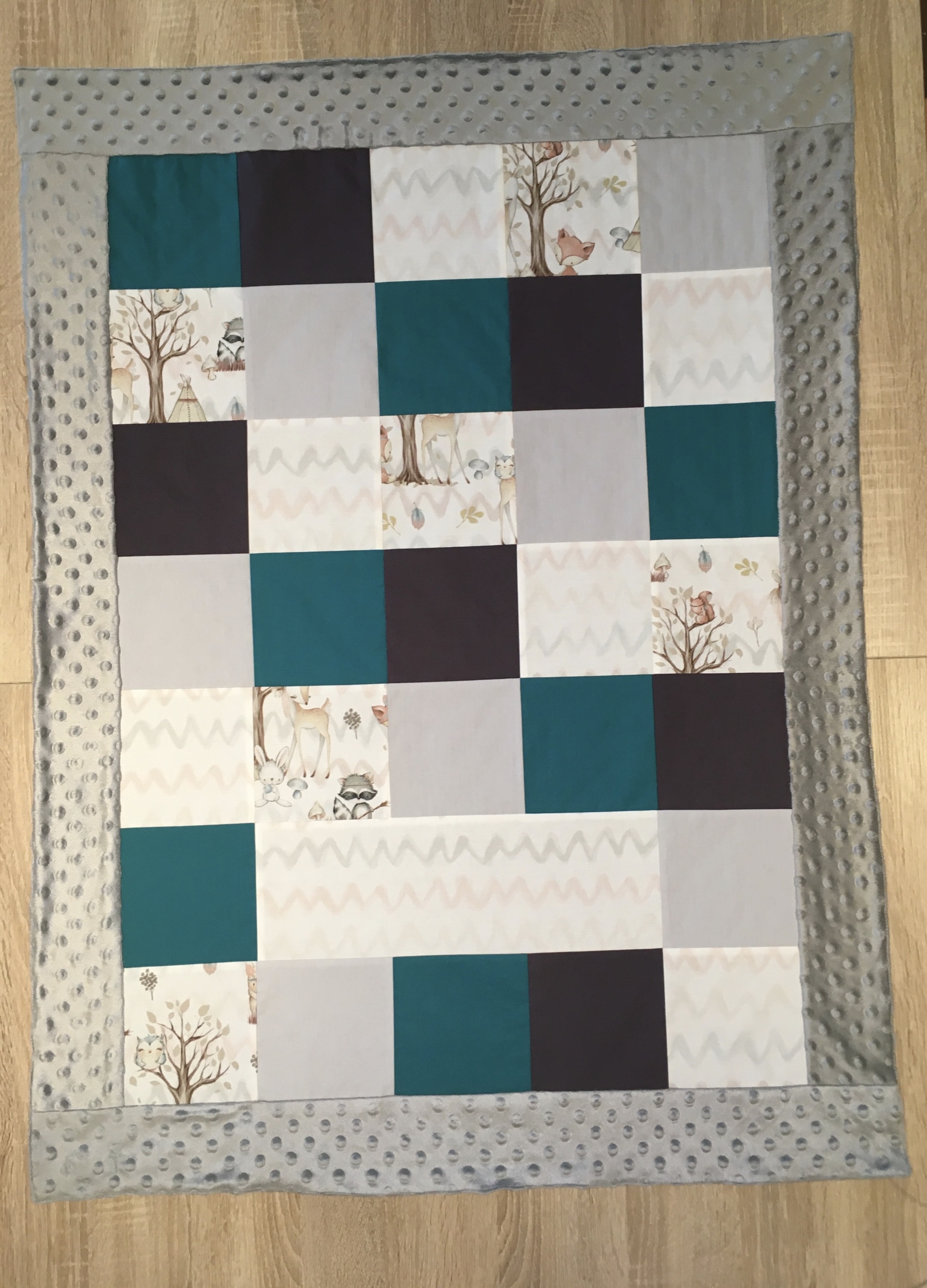Une jolie couverture au patchwork, personnalisable avec prénom ou autres inscriptions, qui tiendra chaud à bébé durant les promenades. Disponible de suite dans la boutique.